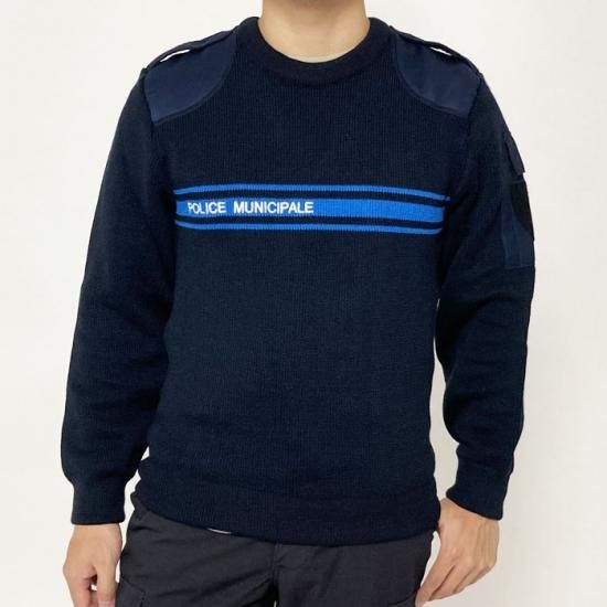 フランス自治体警察 POLICE MUNICIPALE ネイビー ブルーライン ポリスセーター 新品 S31BN